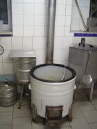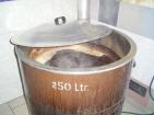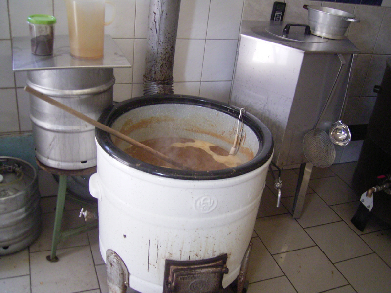 Die 250 Liter Sudpfanne. Darin kocht gerade der Weizendoppelbock "SirRollius".