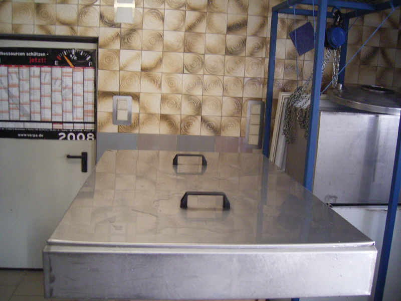 Das Kühlschiff mit Abdeckung. Darin setzt sich der sogenannte Heißtrub ab.