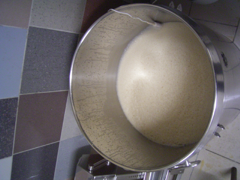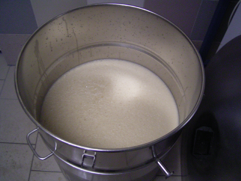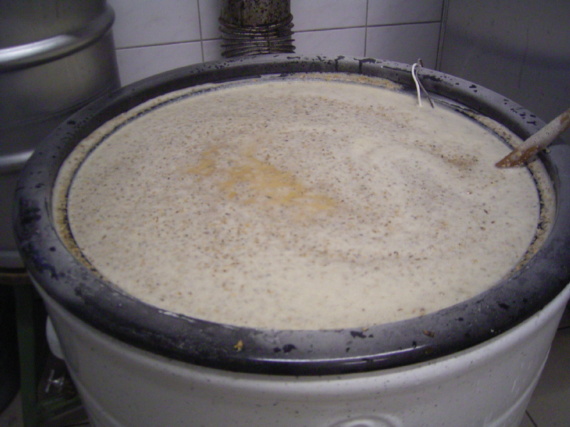 Gärbottich 2 mit frischer, angestellter Weizenbockwürze.